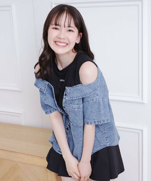 本体は軽やかな薄手デニム素材、タンク部分は伸縮性のあるリブ素材を使用。