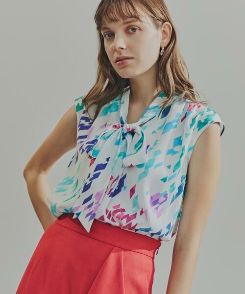 膨らみと落ち感が特徴の上品なジョーゼットで作られた落ち感のあるリボンブラウスです。ウエストより高い位置でギャザーを自然と消す事によりボトムにインしたスタイリングもウエスト周りをすっきりと見せてくれます。