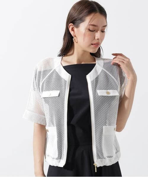 シャープな印象を与えるスクエアレースを使用したブルゾン。