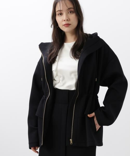 軽やかなダンボールニット素材で仕立てた、リラックス感漂う一着です。ゆったりとしたシルエットながら、ウエストには内側に配したスピンドルにより、お好みでシェイプを調整可能。程よくフィットさせることで、ペプラムフレアがフェミニンな印象と美しいメリハリを演出します。一枚仕立ての軽やかさで、さらりと羽織れる着心地の良さも魅力。フロントにはゴールドジップをあしらい、シャープで大人っぽいアクセントをプラス。カジュアルながらも洗練された、こなれ感のあるアイテムです。