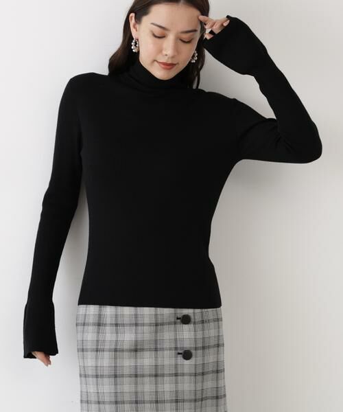 繊細かつ、温かみのあるウールシアーな表情がポイントのタートルネックニットです。伸縮性と編地の表面感が出るリブ編みで仕上げました。ベーシックなシルエットで汎用性の高い1枚です。フレアスリーブデザインが旬な雰囲気を演出するハイネックニットトップス。インナー使いでレイヤードを楽しんでいただけるアイテムです。【素材説明】繊細なウール混の糸を極限まで細かい編み(ゲージ)で仕上げ、カットソーでは表現できない上質な透け感を楽しめます。【商品特性】ストレッチあり/裏地なし/かぶって着用
