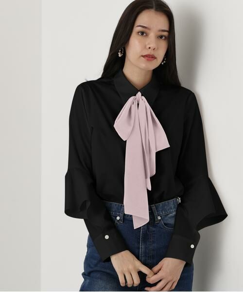 シャープな印象を与えるシャツカラーに、袖へと大胆にあしらった大ぶりのラッフルディテールが視線を惹きつける、華やかなコットンシャツ。立体的なラッフルが動くたびに表情を生み、フェミニンでありながらも存在感のあるスタイルを演出します。襟元にはバイカラーで仕上げた大ぶりのリボンをプラス。クラシカルでありながらモードなエッセンスを感じさせ、スタイリングを一気に華やかに格上げします。【素材説明】横糸にスーピマコットンとマイクロノーヴァ(フルダルポリエステル)の混紡糸を使用した、上質なコットンポリエステル素材。しわになりにくく、ソフトで滑らかな風合いとすっきりとした表情が魅力です。【商品特性】ストレッチなし/裏地なし/袖カフス上にスリットあり透け感/なし|裏地/なし|光沢/なし|生地の厚さ/普通|伸縮性/なし|シルエット/スタンダード
