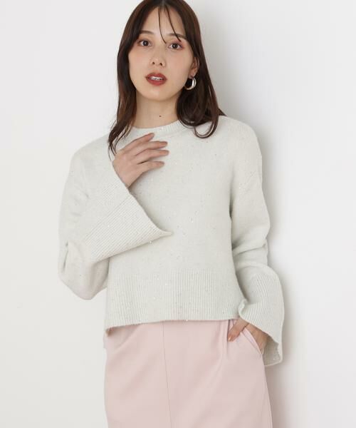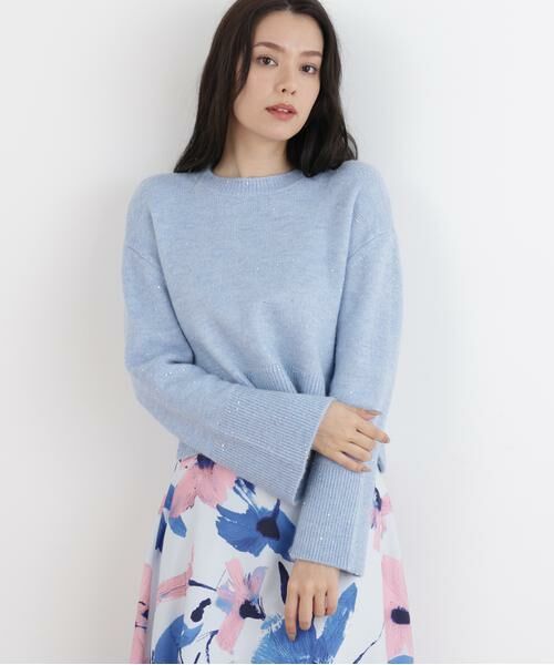 きらめきを添えるラメ糸と、華やかさをプラスするスパンコールを織り込んだデザイン。光の当たり方によって繊細に輝き、動くたびに表情を変えるのが特徴です。ベース素材の柔らかさと相まって、上品さと華やかさを兼ね備えた仕上がりになっています。