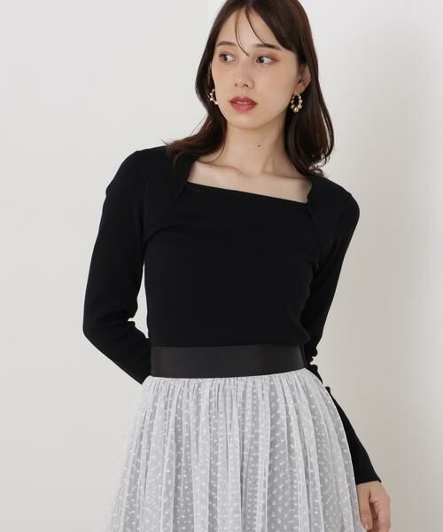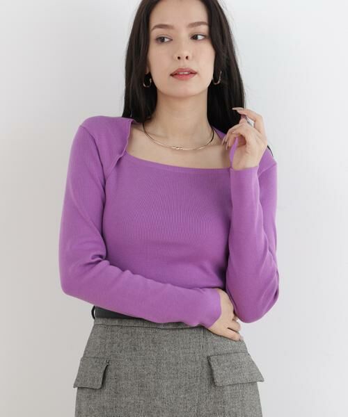スクエアネックにショートボレロ風のディテールを重ねたようなユニークなシルエットが特徴です。すっきりとしたラインで女性らしさを引き立てながら、伸縮性のある柔らかなニット素材で着心地も抜群。デニムと合わせてカジュアルに、スカートと合わせてフェミニンにと、幅広いコーディネートに活躍します。一枚で存在感のあるトップスは、シーズンのスタイリングを華やかにアップデートしてくれます。