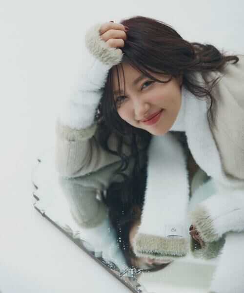 思わず触りたくなるふわもこ素材のマフラー&ハンドウォーマーセット。
