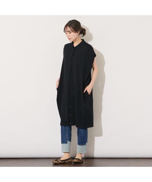 ボタンを閉じて1枚でチュニックとして、ボタンを開けてロングカーディガンとして、どちらでも使いやすいデザインです。