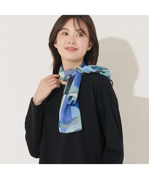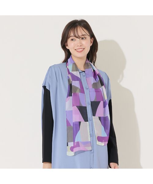 ブルー系、パープル系のジオメトリックプリントが、暗くなりがちな秋冬コーデのアクセントにピッタリです。