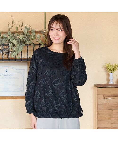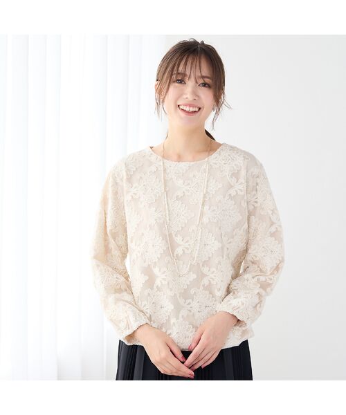 花をモチーフにしたジャカード柄で高級感がある、チュールジャカードのブラウスです。