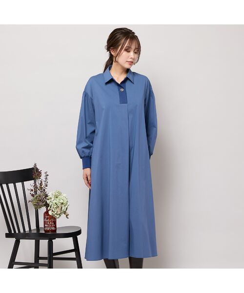 前中心のタックでゆったりとしたAラインシルエットのワンピース。