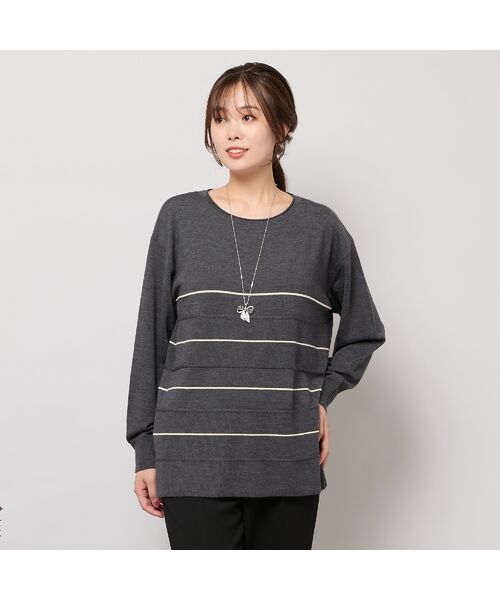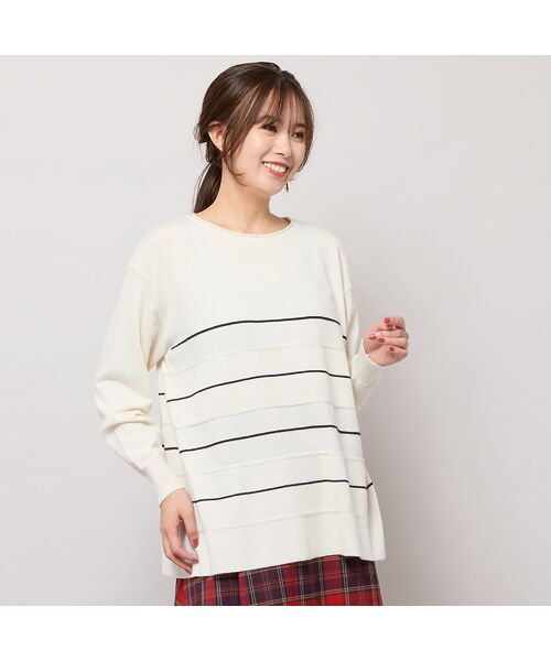 ■バイカラーのボーダー柄でバランス良く見せてくれるニットトップ■
