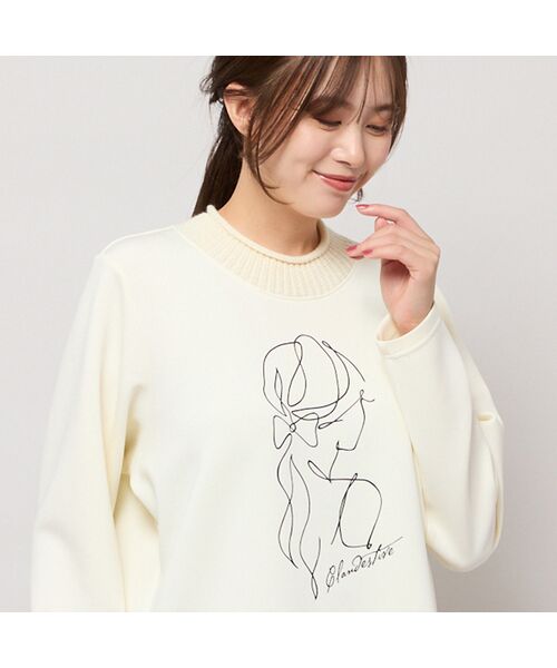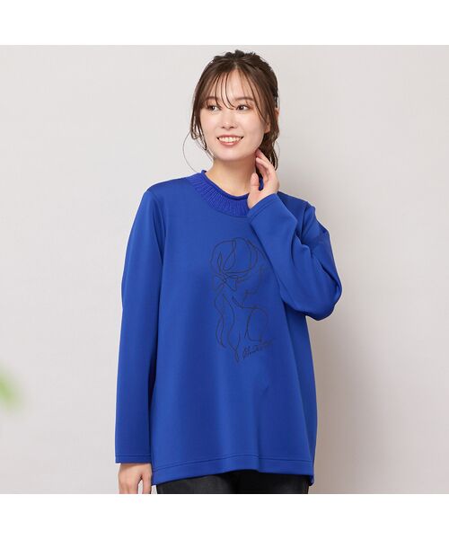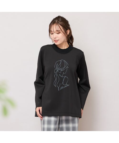 ■『ポニーテールのあの子』プリントが雰囲気のある、襟ぐりニットリブ切り替えトップ■