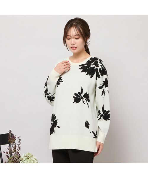 高級感のある、立体的なフラワーモチーフのジャカードが目を引くニット。