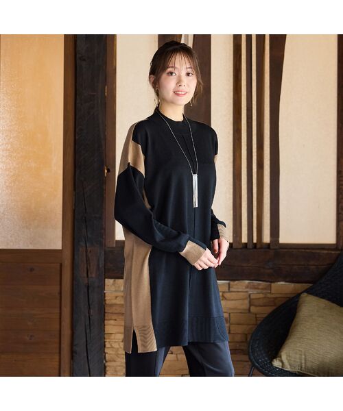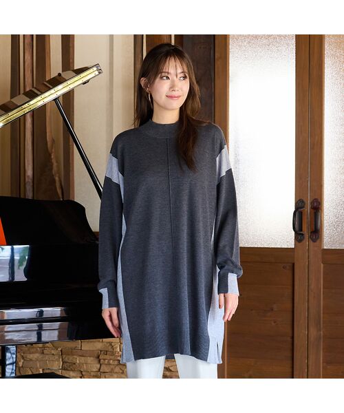 柔らかい風合いで着心地抜群のチュニック丈ニット。