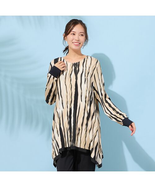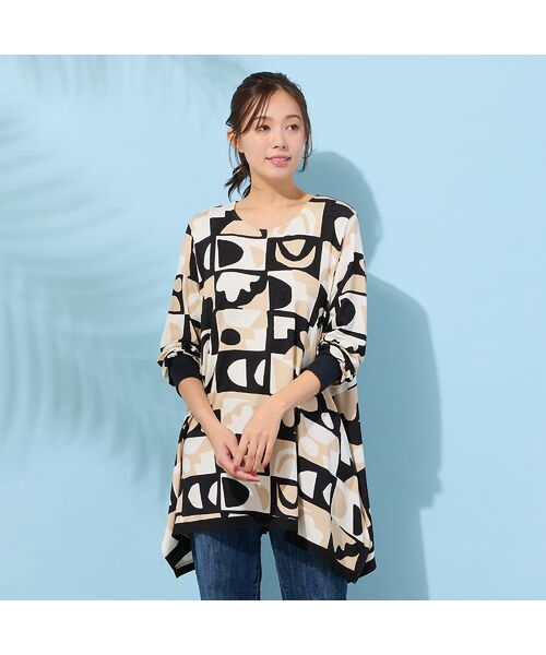 ■プリントが華やかな、テントラインカットソー■