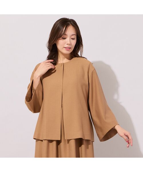 ベルスリーブのゆったりとしたジャケットは、ドロップショルダーデザインで、きちんと見えしながらも快適な着心地。