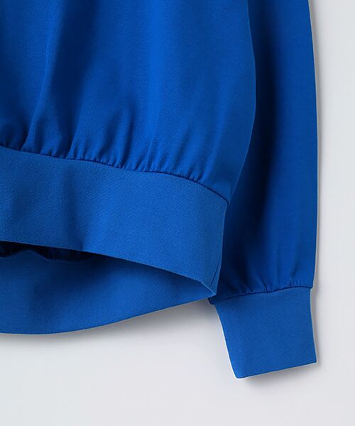コットンとは思えないほどの美しく自然な光沢と、発色の良いミニ裏毛。被りタイプのフーディー。フードのフロントをスタンドにし、さらに共布2重にする事で、衿周りに立体感が生まれて存在感もアップします。肘部分にタックを施し、ほのかな丸みのあるドロップショルダーデザイン。着丈も少し短めで、ボリュームのあるワイドパンツや、スカートなどと合わせやすくお作りしました。2月のテーマカラーであるロイヤルブルーがアクセントです。