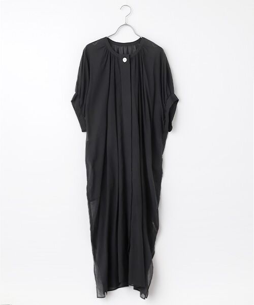 アンダーパンツ付きのセットドレス。シャリ感とふくらみを持つ糸を揉みこんで作られた、ナチュラルな膨らみと清涼感のあるボイル素材。暑い時期にピッタリの前開きのクルーネックドレスです。長め丈のアンダーパンツがセット。1枚着のワンピースとしてはもちろん、眺め丈のプリントTシャツなどを中に着て羽織アイテムとしてのスタイルが手軽に完成します。
