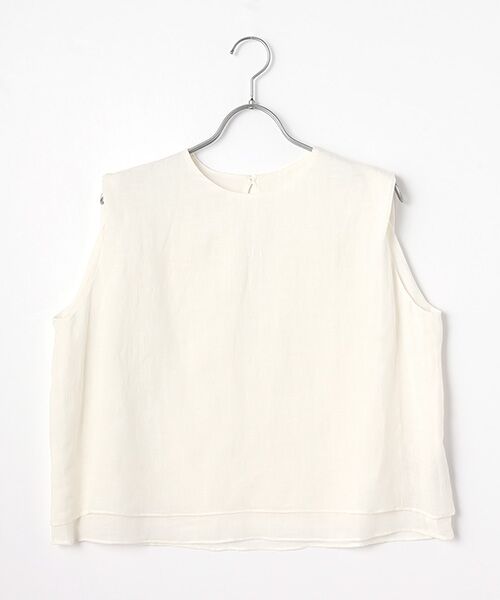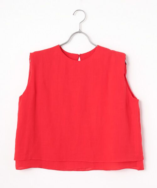 ノースリーブブラウス。リネンコットンのガーゼ素材。共生地二重仕立て。裾の段差ディテールもポイントです。「ナチュラルリネンガーゼワイドクロップドパンツ(A1553FP208)」のセットアップがお薦めです。02レッドは、プレインピープルオリジナルカラー。