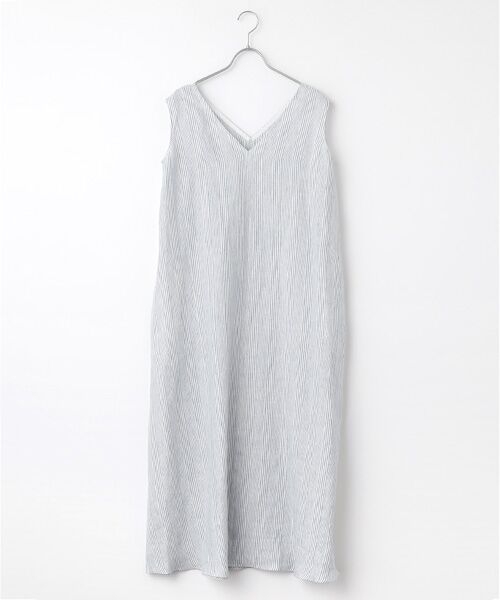 Vネックワンピース。ストライプの接ぎの合わせから丁寧な作りが見える拘りの一枚。