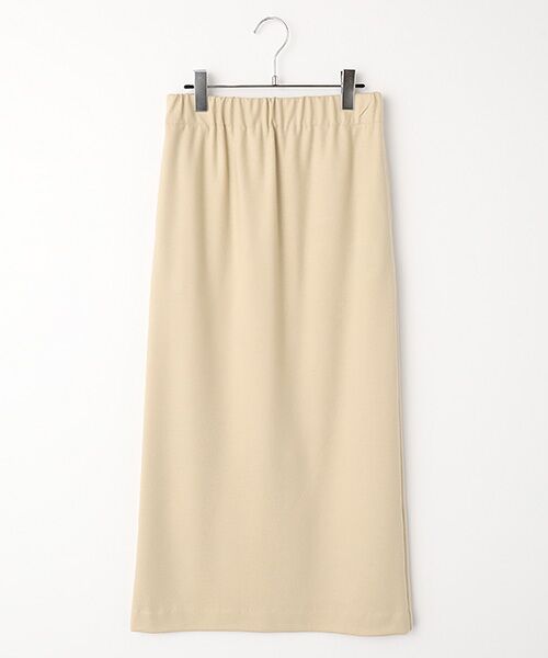 素材の風合いを活かした、ミニマルなロングストレートスカート。ウエストはゴム仕様でイージーな着心地ながら、ギャザーを控えめにすることで、着用時はすっきりとしたシルエットに。長めの着丈もバランスよく、安心感のある一枚です。