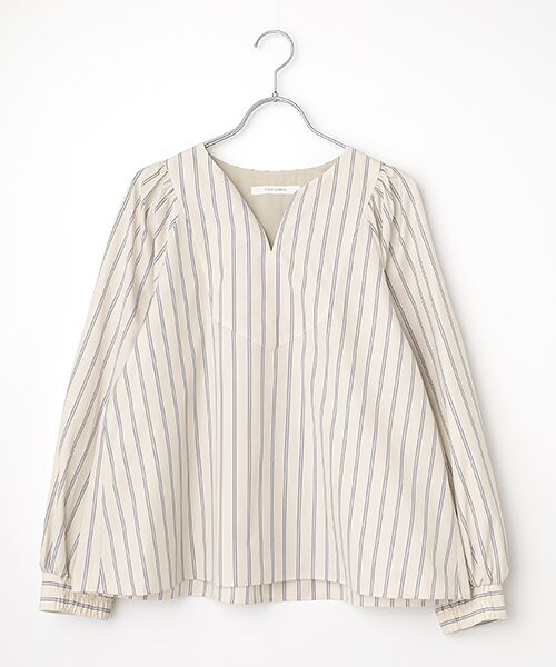コットンラチネ・タイプライターストライプギャザーブラウス