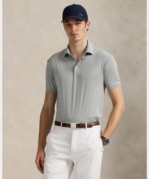 風通しの良い薄手のストレッチジャージーを使用したポロシャツ。蒸れにくい特性により、一日中涼しく快適な着心地をキープ・テーラードフィット:上腕に沿ってカーブした袖 / ウエストに沿ったライン・リブのポロカラー / 3つボタンの前立て / オーダーメイドのコロゾボタン・半袖、リブアームバンド・右肩と首の後ろ中央にRLXのシリコンタブ・ストレートなスリット入りの裾・モデル身長185cm、着用サイズM※商品の色味は、光のあたり具合など諸条件により色感が多少異なって見える場合がございますので予めご了承下さい。