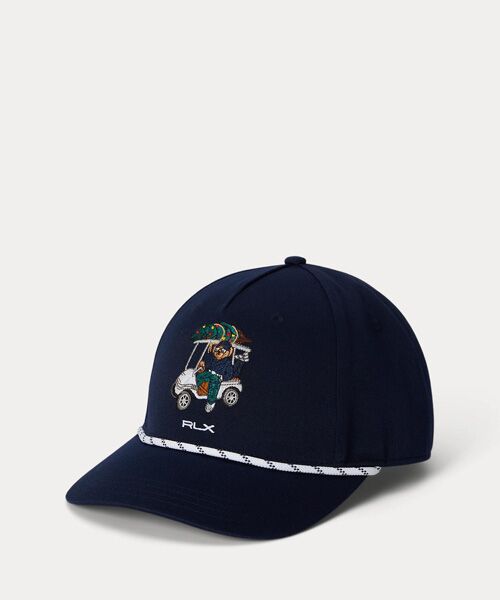 蒸れにくい薄手のシェルのフロントに、ゴルフカートに乗ったアイコニックなマスコットの華やかなグラフィック刺繍を施したキャップ・シーム入りのつば / つばにロープトリム・5枚パネル構造・風通しを良くするアイレット刺繍 / 蒸れにくいメッシュのスウェットバンド・フロントにPoloベアとRLXの刺繍・背面にRLXの刺繍と調節可能なスナップ付きRLXストラップ※商品の色味は、光のあたり具合など諸条件により色感が多少異なって見える場合がございますので予めご了承下さい。