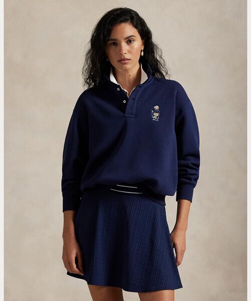 アイコニックなポロシャツにインスパイアされた薄手のフリースプルオーバー。平編みの襟や2つボタンの前立てなど、シグネチャーのディテールが特徴。胸元に刺繍を施したアイコニックなマスコットのPoloベアは、ゴルフ場で過ごす一日にぴったりの装い