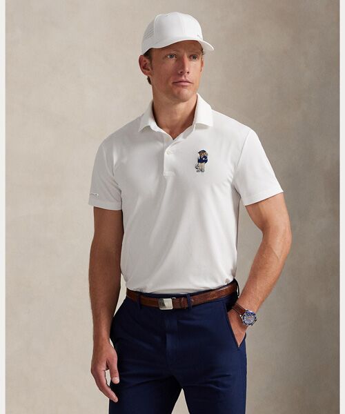 蒸れにくいストレッチピケで快適な着心地を実現したポロシャツ。胸にあしらったアイコニックなPoloベアが特徴・テーラードフィット:上腕に沿ってカーブした袖 / ウエストに沿ったライン・リブのポロカラー / 3つボタンの前立て / コロゾボタン・半袖、リブアームバンド / 右袖にRLXのシリコンタブ・左胸にPoloベアとRLXの刺繍・ストレートなスリット入りの裾・モデル身長185cm、着用サイズM※商品の色味は、光のあたり具合など諸条件により色感が多少異なって見える場合がございますので予めご了承下さい。