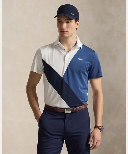 モダンなカラーブロックデザインをつなぎ合わせたストレッチピケのポロシャツ。蒸れにくく、妥協を許さない快適さを一日中キープ・テーラードフィット:上腕に沿ってカーブした袖 / ウエストに沿ったライン・リブのポロカラー / 3つスナップの前立て・半袖・首の後ろ中央にRLXのシリコンタブ・ストレートなスリット入りの裾・モデル身長185cm、着用サイズM※商品の色味は、光のあたり具合など諸条件により色感が多少異なって見える場合がございますので予めご了承下さい。