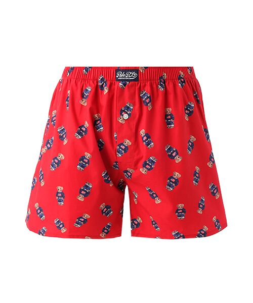オーガニックコットン100%の平織生地を使用したトランクスです。表面のなめらかさと光沢のある素材感が特長。フロントセンターに縫い付けたラベルがポイントで、ロゴ刻印入りボタンがさり気ないこだわりです。アイコニックなPOLOベア(コアフラッグセーターベア)をオールオーバープリントした、ギフトにも最適なアイテムです。前開き仕様。