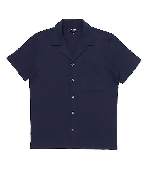 コットンと環境に配慮されたリサイクルポリエステルを混紡したニットシアサッカー素材を使用したショートスリーブパジャマトップシャツです。無地でありながら織柄がストライプに見える表面感と、軽い着心地が特長。ストレッチ性が高く、生地表面に凹凸のある構造がもたらす清涼感も魅力です。冷房が効いた室内での羽織アイテムとしても快適に着用できます。左胸ポケットに全ボディカラー共通のネイビーで入れたブランドアイコンのポロプレイヤー刺繍もポイント。同素材を使用したショートパンツ(RM8-B306)も展開しているので、セットアップでの着用もオススメです。