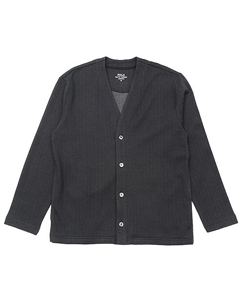 環境に配慮されたリサイクルポリエステルにコットンとポリウレタンを混紡した、保温性とストレッチ性に優れた素材によるカーディガンです。テレワーク時のラウンジウェアや、冷房が効いた室内での羽織アイテムとしても快適に着用できます。ヘリンボーン柄で、左ポケットに入れたブランドアイコンのポロプレイヤー刺繍もポイント。前身頃にポケット付き。同素材を使用したロングスリーブヘンリーネックシャツ (RM8-C003)と、ロングパンツ(RM8-C102)も展開しているので、セットアップでの着用もオススメです。