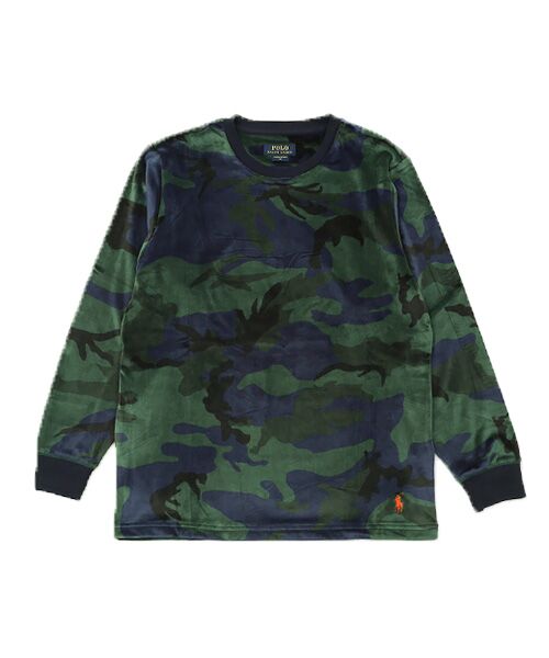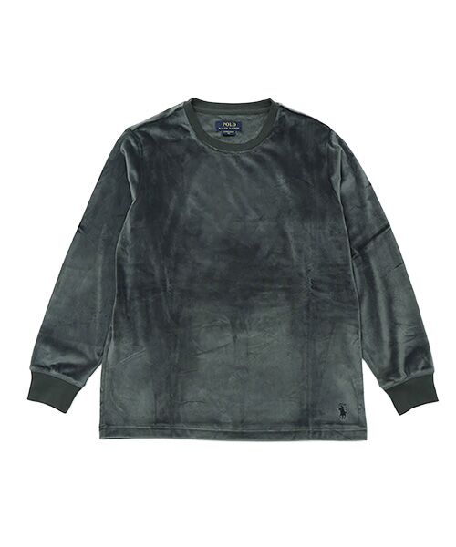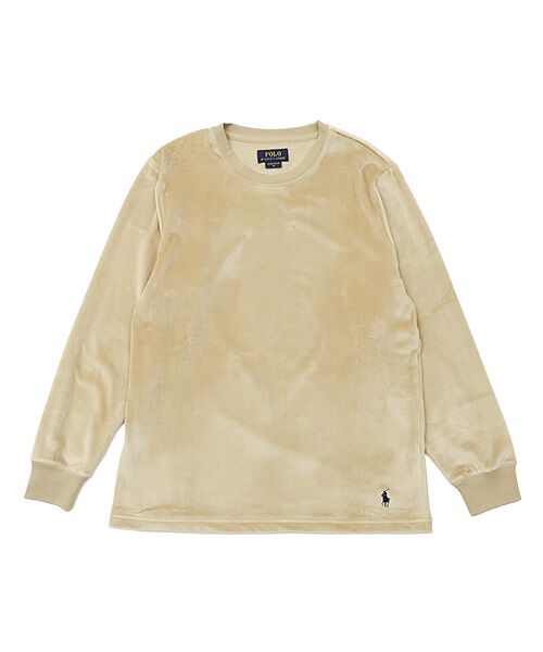 環境に配慮されたリサイクルポリエステルとポリウレタンの混紡による、上質な裏起毛ベロア素材を使用したロングスリーブクルーネックシャツです。なめらかで光沢のある素材感と、柔らかな肌触りが特長。保温性とストレッチ性にも優れています。袖口のリブが保温性を高めるとともに、スタイリッシュな印象を演出。左裾に入れたブランドアイコンのポロプレイヤー刺繍もポイントの、幅広いシーンで活用できる定番アイテムです。2025FHシーズンは新色として、ベージュ、チャコール、ネイビーベースのカモフラージュ柄(プリント)を追加しました。