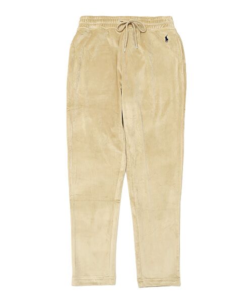 環境に配慮されたリサイクルポリエステルとポリウレタンの混紡による、上質な裏起毛ベロア素材を使用したスリムパンツです。なめらかで光沢のある素材感と、柔らかな肌触りが特長。保温性とストレッチ性にも優れています。ウエスト左部分に入れたブランドアイコンのポロプレイヤー刺繍もポイントの、幅広いシーンで活用できる定番アイテムです。2025FHシーズンは新色として、ベージュ、チャコール、ネイビーベースのカモフラージュ柄(プリント)を追加しました。