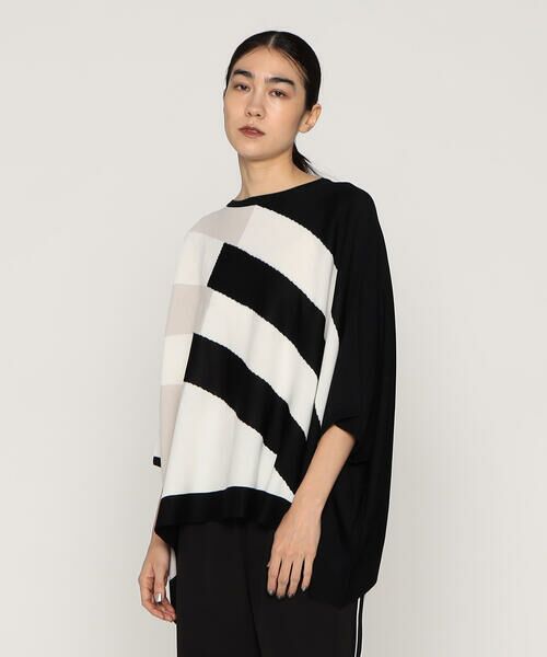 《デザイン》ナナメボーダービックプルオーバーです。身幅が広いですが、滑らかな風合いのため、ごわつかず程よい落ち感です。白黒ベージュの太幅ボーダーを斜めに配してベータらしいユニークなスポーツルックを演出しています。《素材》ソフトなセミダルレーヨンと特殊なポリエステルを空気を多く含む撚糸加工を施しています。 ふくらみがあり軽く、通年使用できます。抗菌防臭加工を加えることで、快適に着られます。