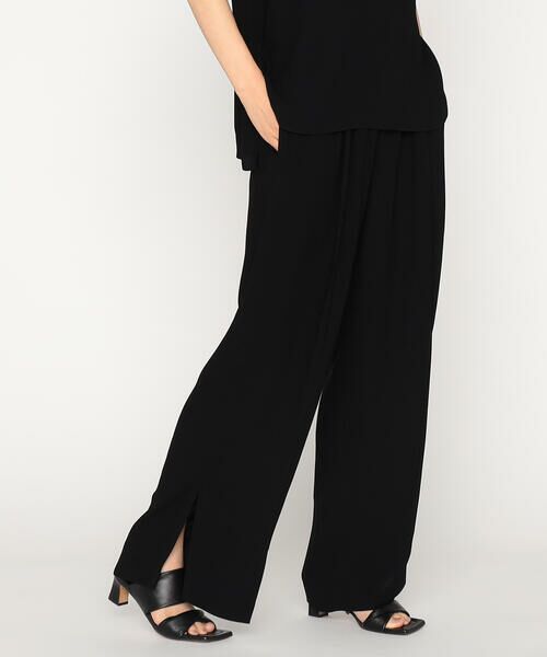 センターラインのあるきちっと見えでいながら、ウエストはゴム仕様でコンフォータブルなワイドパンツです。