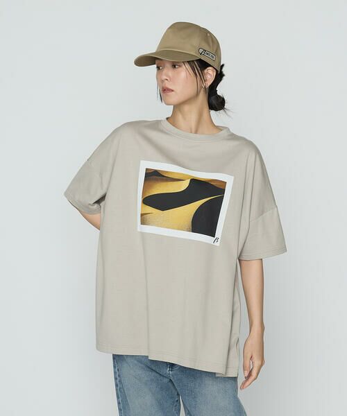 《デザイン》サハラ砂漠をイメージしてプリントしたTシャツです。砂丘をグラフィカルにアレンジし、細かなラメで砂の流れを表現しています。フォトプリントにはない、色合いと質感が素敵なTシャツです。《素材》厳選された超長綿を贅沢に使用し、ベーシックな天竺にプレミアムな価値を追求しています。原料だけでなく、加工工程でも極限まで毛羽をそぎ落とし、綺麗な目面と自然な発色の良さを生み出しています。
