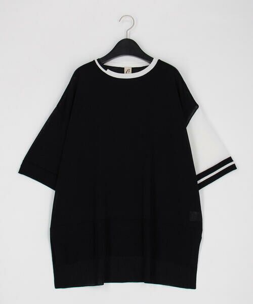 ホワイトを左右不対象に配したスポーティなニットプルオーバーです。