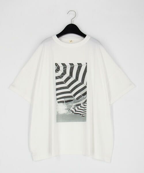 《デザイン》砂浜に寝転がり、下から見上げたパラソルと空を図案化しています。ゆったりとしたサイズ感、モノトーンのプリントはシックな仕上がりで、大人が着やすいプリントTシャツです。《素材》厳選された超長綿を贅沢に使用し、ベーシックな天竺にプレミアムな価値を追求しています。原料だけでなく、加工工程でも極限まで毛羽をそぎ落とし、目面がきれいで自然な強い発色を生み出します。接触冷感・UV機能があります。