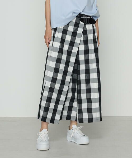 大きなフロントタックとミニベルトがポイントのスカートです。