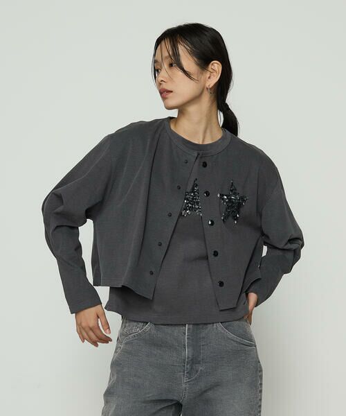 《デザイン》左胸の星の刺繍がポイントのショート丈のカーディガンです。糸を浮かせた特殊な刺繍方法で、短冊状のスパンコールが動くたびに揺れ遊び心をプラスしています。シンプルなスタイリングに合わせるだけで、こなれ感を演出してくれる、機能性とデザイン性を兼ね備えたアイテムです。《素材》自然な風合いの綿糸を使って編み立てた、程よい厚みのあるカットソー素材です。加工工程や染料のブレンドまでこだわることで、使い込んだような自然な色合いとヴィンテージ感のある表現を引き出し、特殊起毛を施すことで、経年変化や着用感のある質感に仕上げています。