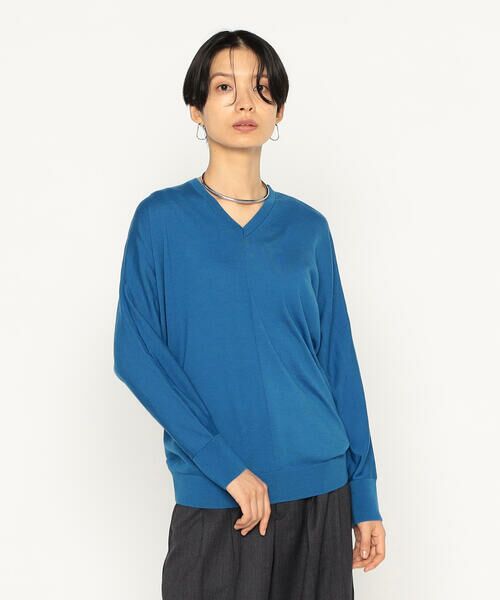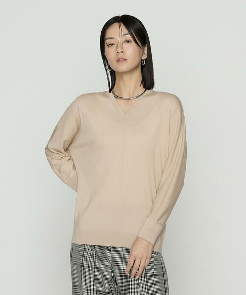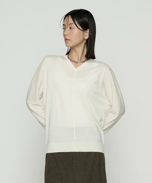 ゆったりとした着心地ですが、ハイゲージのニット地なので袖下等もそれほどもたつき無く着られます。