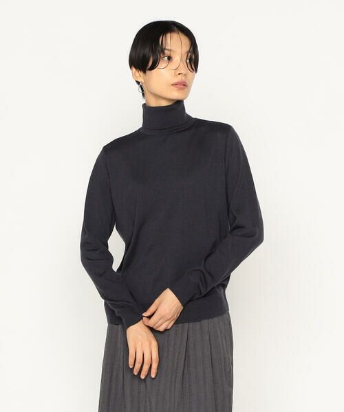 《デザイン》つかず離れずのサイズ感です。一枚でもお召いただけて、ジャケットのインナーとしても嵩張らずに着られます。(薄色は多少透け感があります。)指一本分のゆとりを入れたタートルネックがこだわりのポイントです。程良いゆとりがありながらもすっきりとみせてくれるタートルネックを目指しています。《素材》極細のウールを使用した滑らかな風合いの梳毛糸です。上品な光沢感で、発色性に優れた素材です。