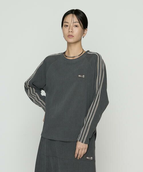 両袖に贅沢にライン使いした両面ベルベットテープと、胸元のHAPPYチケットワッペンがポイントのプルオーバーです。