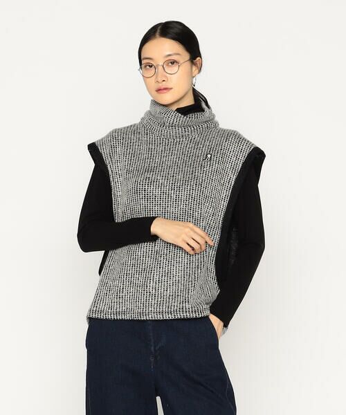 アームホールと脇部分の縫い代を表に出して生まれた黒ラインがポイントのベストです。