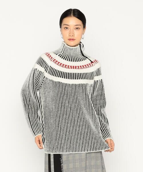 ベースの編地は凹凸になっていて谷が黒、山の部分がループ糸の白色で軽くて柔らかな仕上がりです。