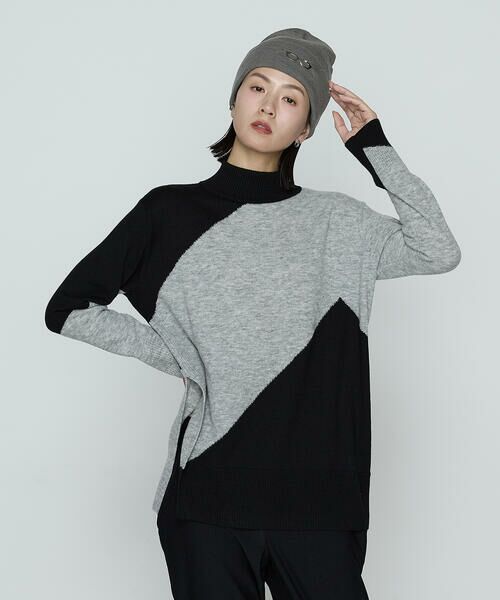 大きなジグザグ柄をインターシャ編みでつくり、ヘリンボーン柄の一部をビッグにして表現しています。