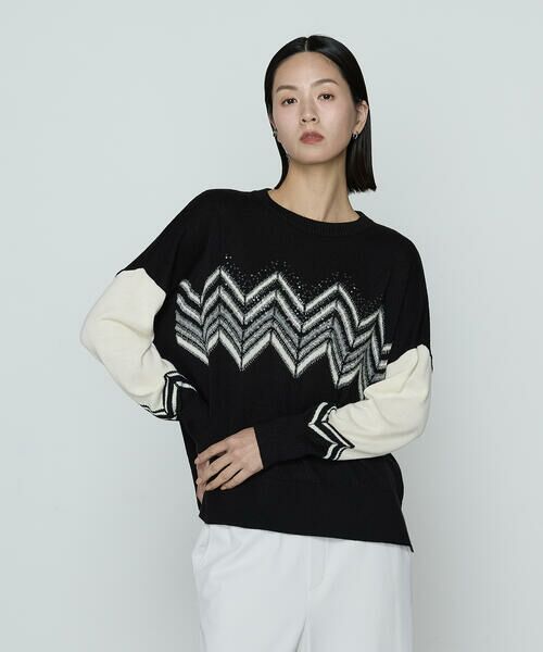 ヘリンボーンジャージー柄に合わせ胸と袖口にジグザグ柄を施したプルオーバーです。