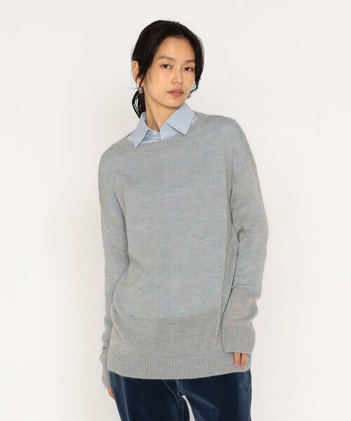 モヘヤ糸に細い糸のウール糸を引き揃えてざっくりと編んだ天竺は繊細でやさしい風合いに仕上がっています。